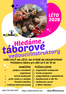 Hledáme mezi nás oddílové vedoucí, což jsou vedoucí, kteří mají na starost oddíl dětí, dále táborové vedoucí, kteří nám pomáhají například s přípravou...