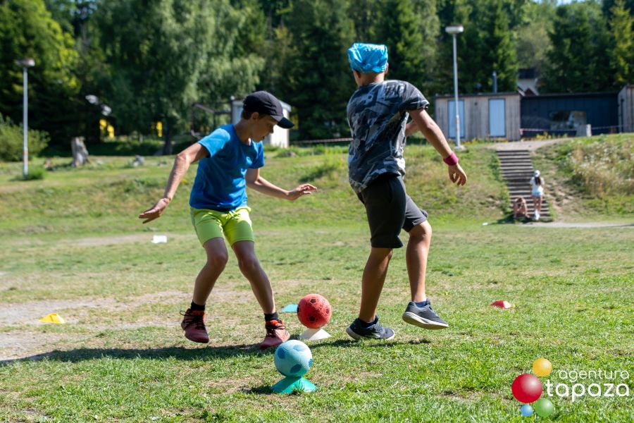 V rámci každého bloku mají děti na výběr 2-3 sportovní aktivity, takže každý den je sportovně velmi pestrý. V našich střediscích máme k dispozici více sportovišť jako např. travnaté, štěrkové, betonové hřiště, party stan/klubovny a další.