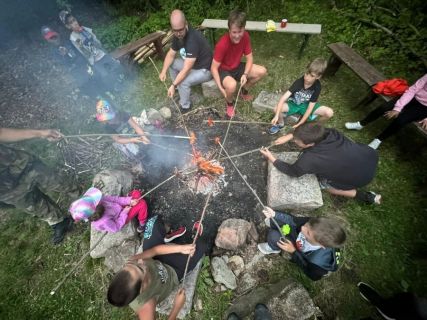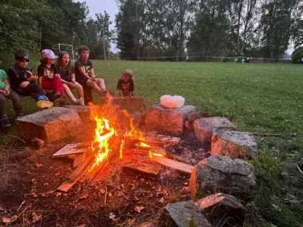 Všechny naše tábory pořádáme v rekreačním areálu Meziříčko, který se nachází zhruba 5 km od odbočky z D1 na Měřín. Okolí nabízí mnoho vyžití ať už v lesích, na loukách či koupání v rybníce. Táborníci jsou ubytování v klasických udržovaných čtyř až pětilůžkových chatkách. V areálu se nacházejí sprchy s teplou vodou a splachovací záchody. K dispozici máme i budovy, kde je součástí i sociální vybavení. Areál disponuje několika udržovanými hřišti a velkým prostorem. Nabízí několik ohnišť na táborák i přístup k rybníku. V případě nepřízni počasí nabízí i vnitřní prostory.