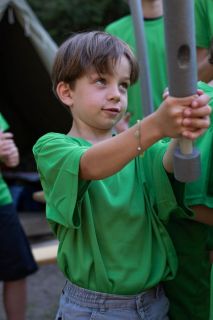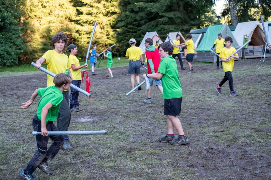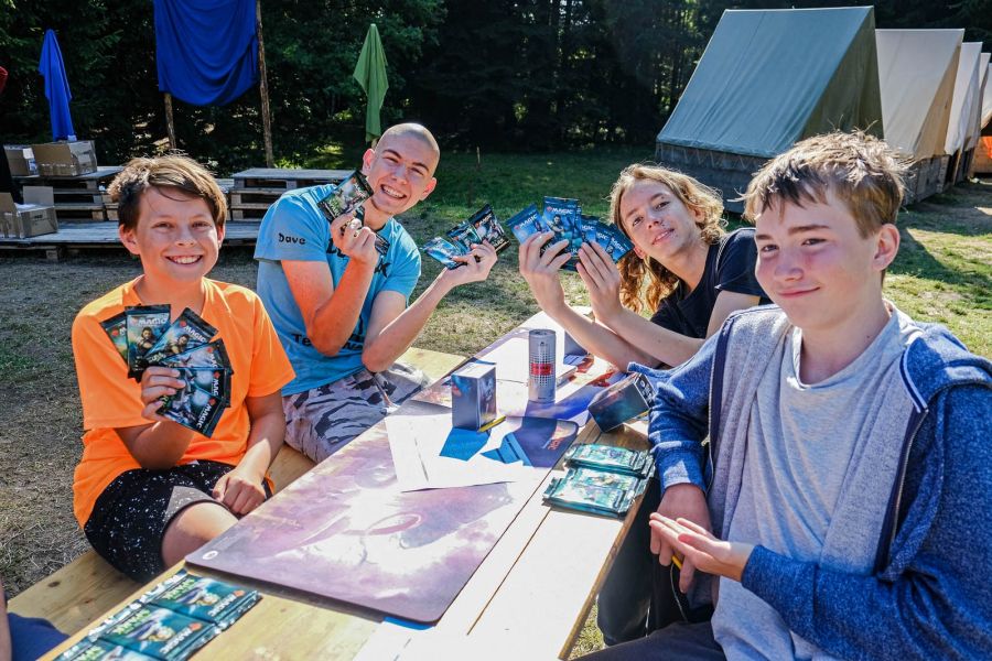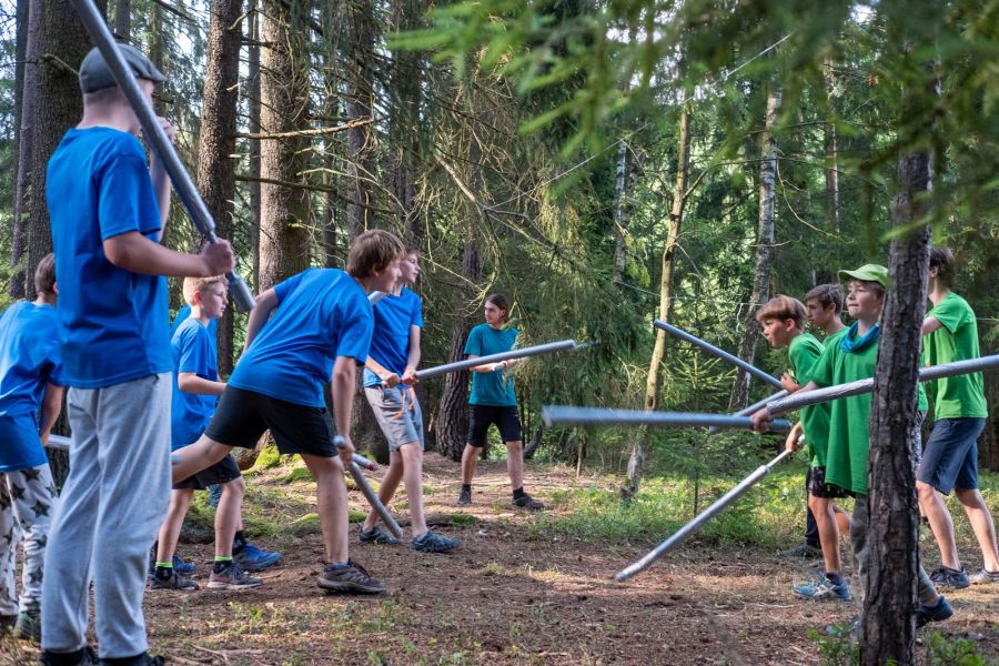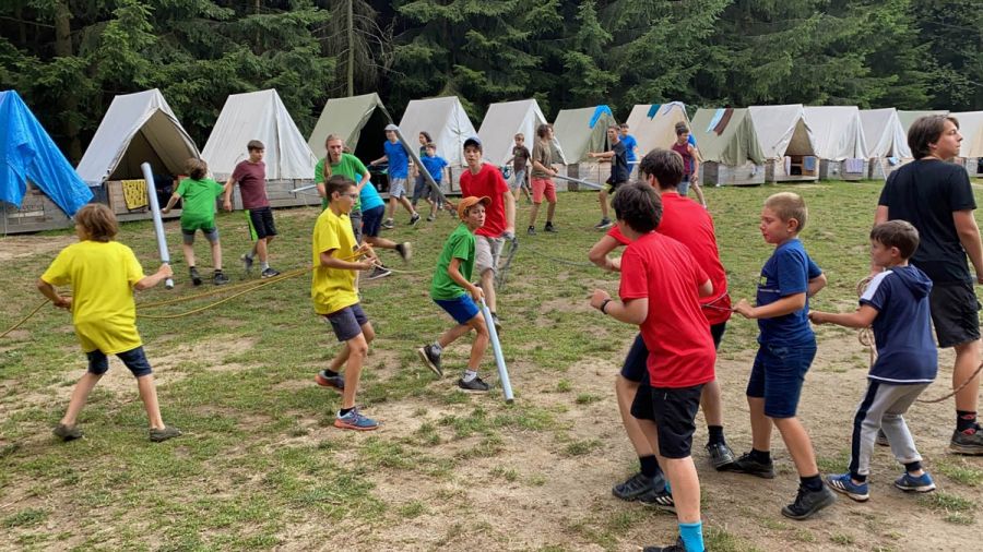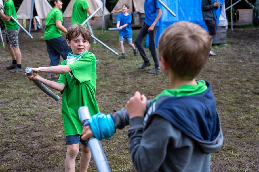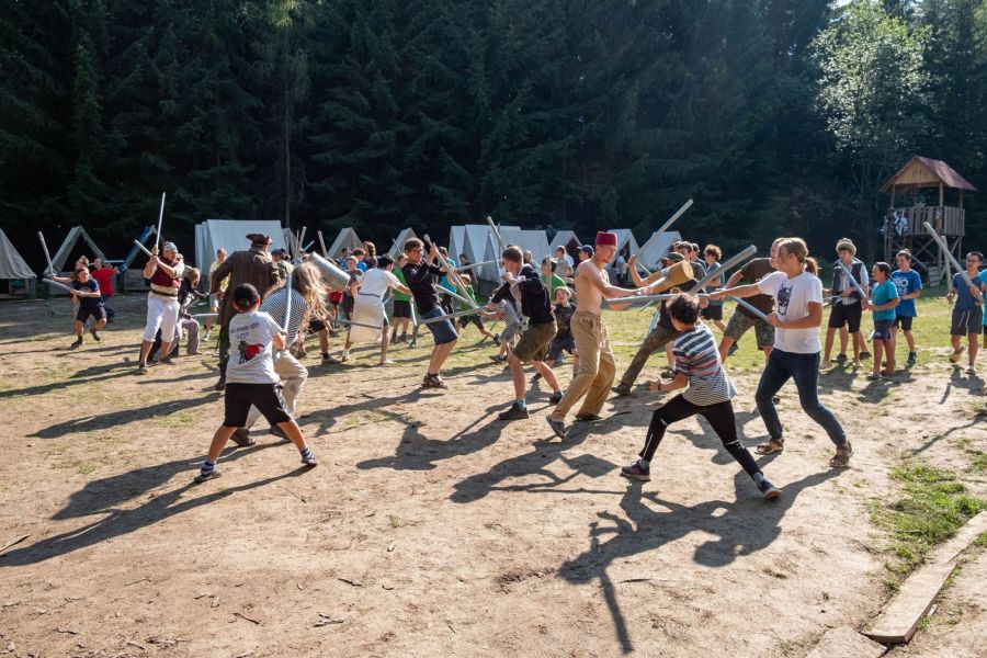 Program vytváříme každý rok úplně od začátku. Vymýšlíme originální celotáborový příběh, který propojuje všechny aktivity – od ranních výzev až po večerní táboráky. Hned první dny si děti vyrobí vlastní pěnový meč, se kterým se zapojí do bojovek, strategických bitev, nočního plížení i týmových her v lese. Nechybí ani logické úkoly, deskové a karetní hry jako Pokémon nebo Magic: the Gathering, kde se vítězí hlavou i spoluprací.