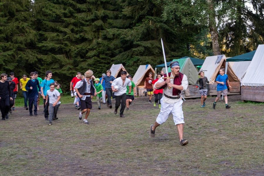 Každé léto už více než 20 let pořádáme fantasy tábor v lese nedaleko Humpolce, kde vznikají dobrodružství, na která se nezapomíná. Tábořiště leží u rybníků, obklopené přírodou a daleko od každodenního ruchu. Bez mobilů a civilizačního hluku se děti na dva týdny ponoří do světa příběhů, her a skutečných zážitků.