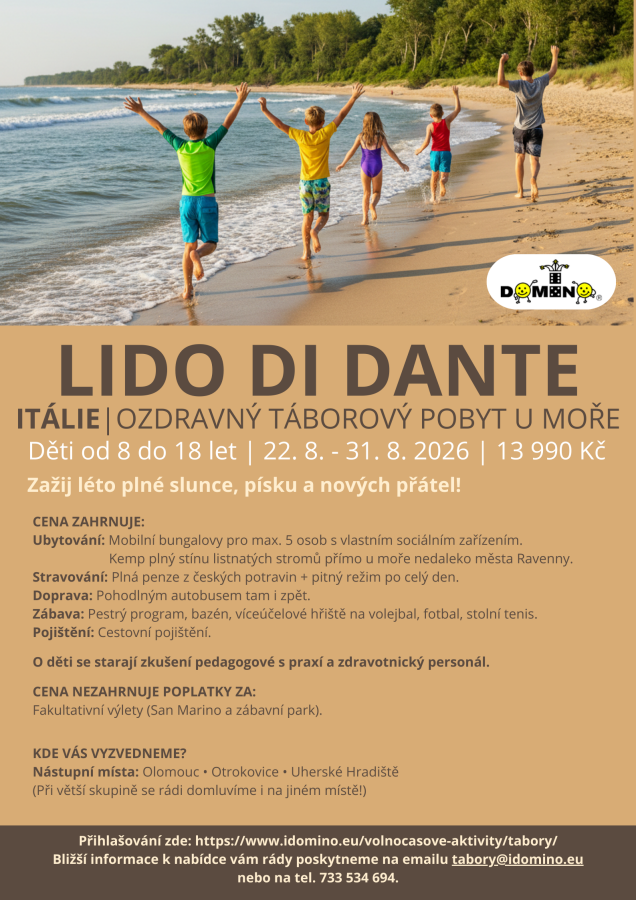 Máš rád/a sluníčko, písečné pláže, moře a skvělou zábavu? Tak vyraz s námi do letoviska LIDO DI DANTE, které se se nachází v blízkosti Ravenny, nedaleko se nachází zábavní park Mirabilandia, v nejúrodnější části Itálie, Pádské nížině.