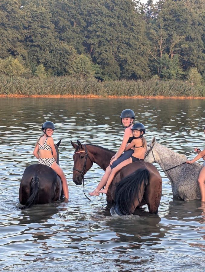Kde budete bydlet? V útulném, nově zrekonstruovaném podkroví venkovského statku. K dispozici máme všechno pohodlí – sociální zařízení s teplou vodou, zastřešenou jídelnu, krytou i venkovní jízdárnu, velké ohrady… A když zrovna nebudeme u koní, můžete skočit na trampolínu, zahrát si ping-pong, houpat se na houpačkách nebo se osvěžit ve velkém bazénu. Ve vesnici máme krásné přírodní koupaliště a sportovní hřiště. A největší dobrodružství? Spaní pod širákem, hvězdy nad hlavou a večerní povídání u ohně.