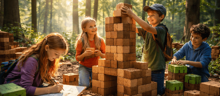 Vstup do světa, kde si můžeš vytvořit úplně cokoliv. Dům, město, skrýš nebo celý vlastní svět. Tady neexistují limity – jen tvoje fantazie a chuť objevovat. Děti se vydají na dobrodružství plné stavění, objevování a řešení výzev. Budou tvořit, spolupracovat a hledat způsoby, jak si poradit v různých situacích. Všechno formou her, které rozvíjí kreativitu i logické myšlení.