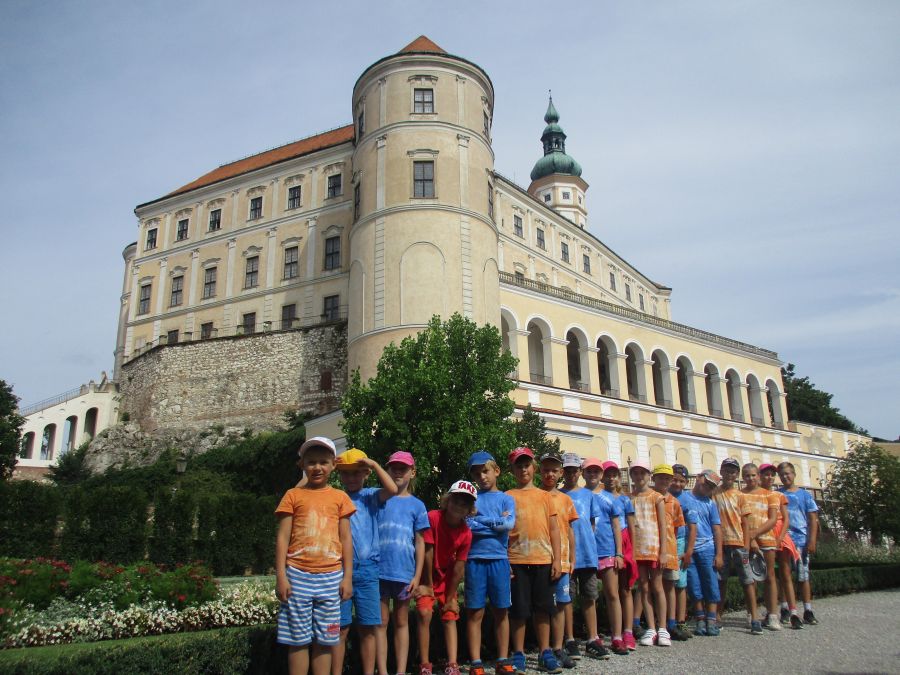 Děti si užijí pestrý táborový program plný her, koupání, výletů, společného vaření (např. výroba vlastní pizzy), táborové diskotéky a večerních programů, batikování triček, karnevalu v maskách, skákání na trampolíně a her na spolupráci a kamarádství. Výlety vedou k přehradě Nové Mlýny, do Mikulova či na koupaliště v Hustopečích s bazény a tobogány.