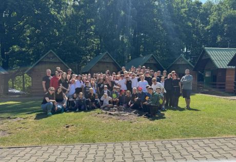 Areál s čtyřlůžkovými chatičkami, velké sociální zařízení se sprchami, jídelna s vlastním personálem, hřiště, louky, lesní divadlo a velká klubovna