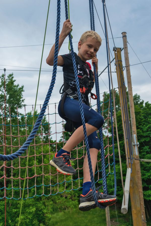 Každý den se děti zapojí do aktivit, které rozvíjejí jejich dovednosti – od týmových her přes fyzické výzvy až po lezení na lanových překážkách. Program kombinuje pohybové aktivity na zemi i ve výškách, kde si děti vyzkouší nejen nízké i vysoké překážky, ale také adrenalinové prvky jako je skok nebo houpačka.
