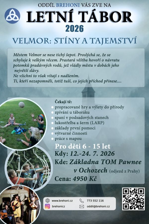 Oddíl Brehoni připravuje na prázdniny 2026 letní tábor. Malý tábor s nadupaným příběhem a silnou atmosférou. Spaní ve stanu, výlety, táboráky a hlavně skvělá parta!
