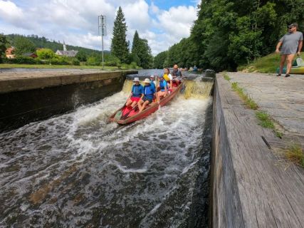 Dětský vodácký putovní tábor nabídne dobrodružství v podobě sjíždění Vltavy na pramicích, her v lese, výletů v okolí Českého Krumlova, sbírání tábornických dovedností nebo třeba večerních táboráků s kytarou.