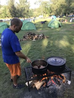 Spíme ve vlastních stanech, které budou pro děti zajištěny, vaříme na ohni, wc dle vybavenosti aktuálního tábořiště, pitná voda zajištěna