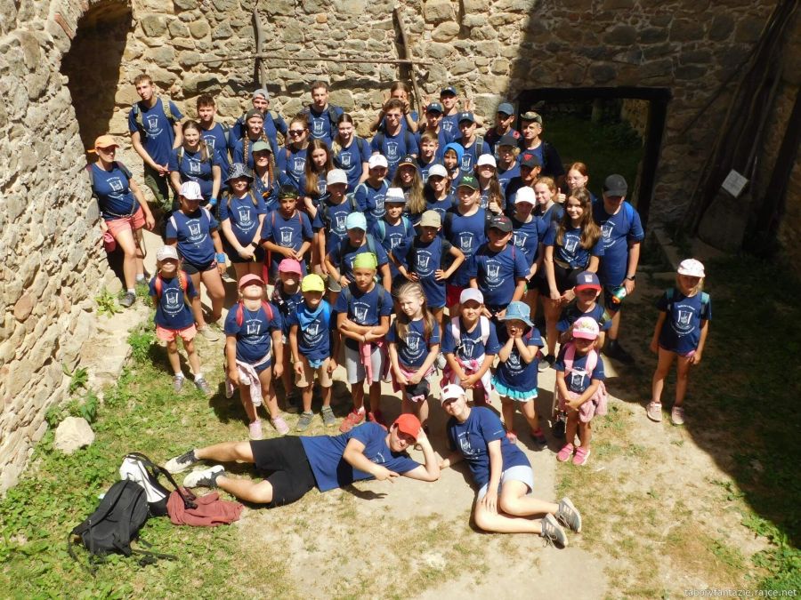 Každodenní program je u nás rozdělen do tří úseků - dopolední, odpolední a večerní. Přes den děti řeší celotáborovou příběhovou zápletku formou tématických her nebo provozují různé individuální sporty a aktivity. Mimo sportovních či logických her a soutěží zaměřených na osobní rozvoj dětí je také na programu plno zajímavých výtvarných činností pro podporu jejich kreativity, koupání na novém krásném místním koupališti a celodenní výlet na hrad Cimburk. Mezi hlavními úseky programu mají děti osobní volno, kdy se pod dohledem vedoucích mohou věnovat vlastním aktivitám, zdokonalování svých dovedností či odpočinku. Večery trávíme zpíváním u táboráku nebo trsáním na diskotéce a mnoho dalšího! V případě příznivého počasí pro děti plánujeme například spaní pod hvězdami.